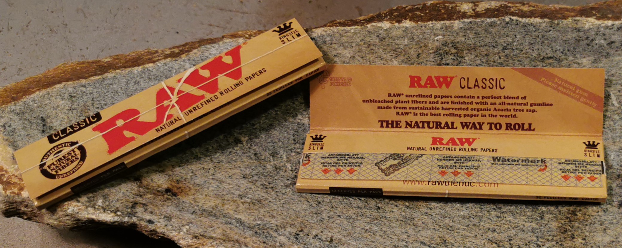 RAW Classic Papiere werden aus den reinsten, natürlich unraffinierten Pflanzenfasern hergestellt und mit einem natürlichen Baumsaftgummi veredelt. Jedes Blatt ist mit einem Wasserdampf-Wasserzeichen mit unserem firmeneigenen Criss-Cross-Aufdruck versehen, der für eine glatte, gleichmäßige Verbrennung sorgt.